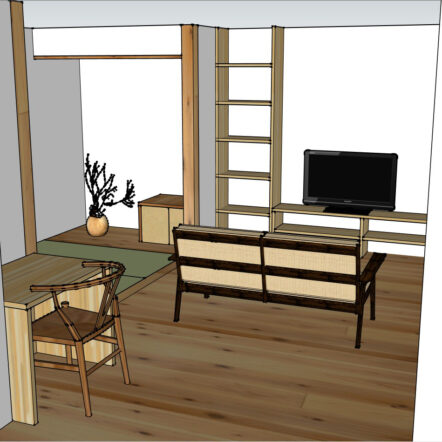 3LDKのマンションに4人家族でお住まいのお施主様。 LDKの横に4枚の引き違い...