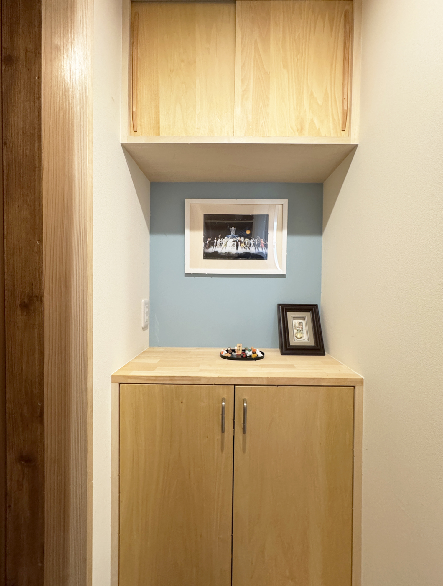 下足入の壁やニッチにはアクセントウォールを貼って。