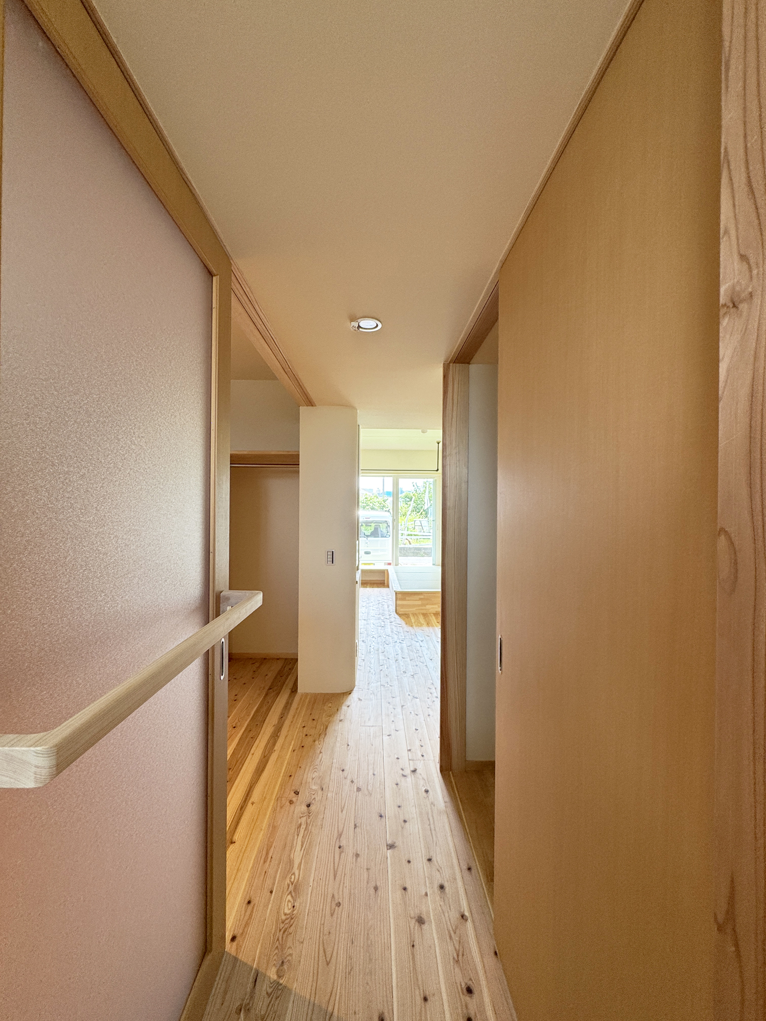 玄関を入ってすぐ寝室があり、水廻りも寝室の隣に設けて普段の暮らしを楽に。